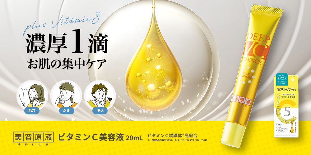 美容原液 ビタミンC配合美容液は、毛穴(保湿によって毛穴のざらつきをなめらかにする)・くすみ(乾燥で厚くなった角質)対策ができるビタミンC(3-グリセリルアスコルビン酸:製品の抗酸化成分)配合の美容液です!
