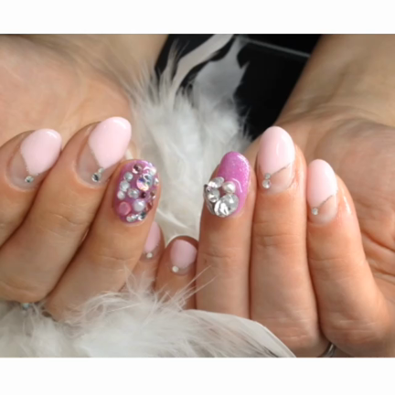 ビジューが眩しいーネイル ピンクネイルきらきら
