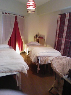 春バージョンのレイアウト福間サロンのレイアウトを春バージョンに変えてみましたベッドを2台並べてツインルーム仕様にしていますのでリラックスムード満点!お一人でゆったりおやすみいただけますし、お友達や親しい方とのお二人連れでもご利用いただけます。リビングは柔らかな春の暖かい光がふりそぞぎ明るい雰囲気の中でアフターティータイムなどをお楽しみいただけるようになりました。お気軽に遊びにいらしてくださいね