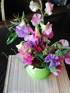気分だけでも春♪まだまだ風が冷たくて寒いですね先日Y様が一足早く春気分になるようにとかわいいスィトピーのお花を差し入れしてくださいましたテーブルの上に飾ったパステルカラーのお花を見ているだけでも元気が湧いてきますねしばらくずっとドライフラワーのアレンジを習ってたので久しぶりにお生花のアレンジをしましたがやっぱりお花ってどんな素材でも心が安らぐし楽しいもんですね今月からは念願のプリザーブドのフラワーアレンジレッスンを受講するのでライセンス取得に向けて頑張りま~す