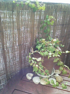 画像は雨に濡れるReposのベランダ住人アイビーです