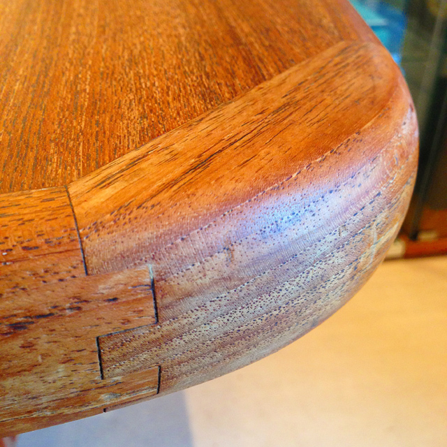 天板の曲線的な縁取りはチーク無垢材の削り出し