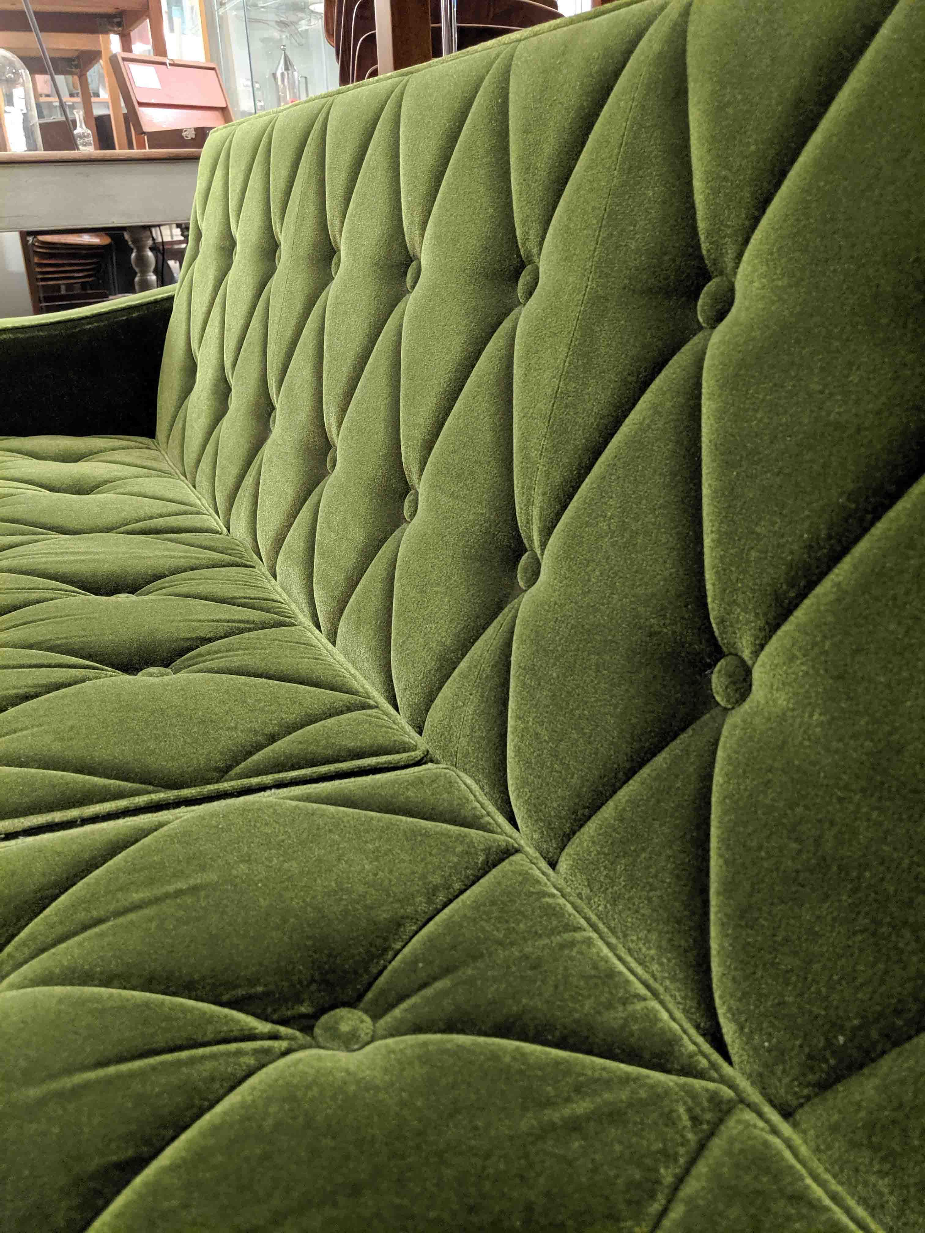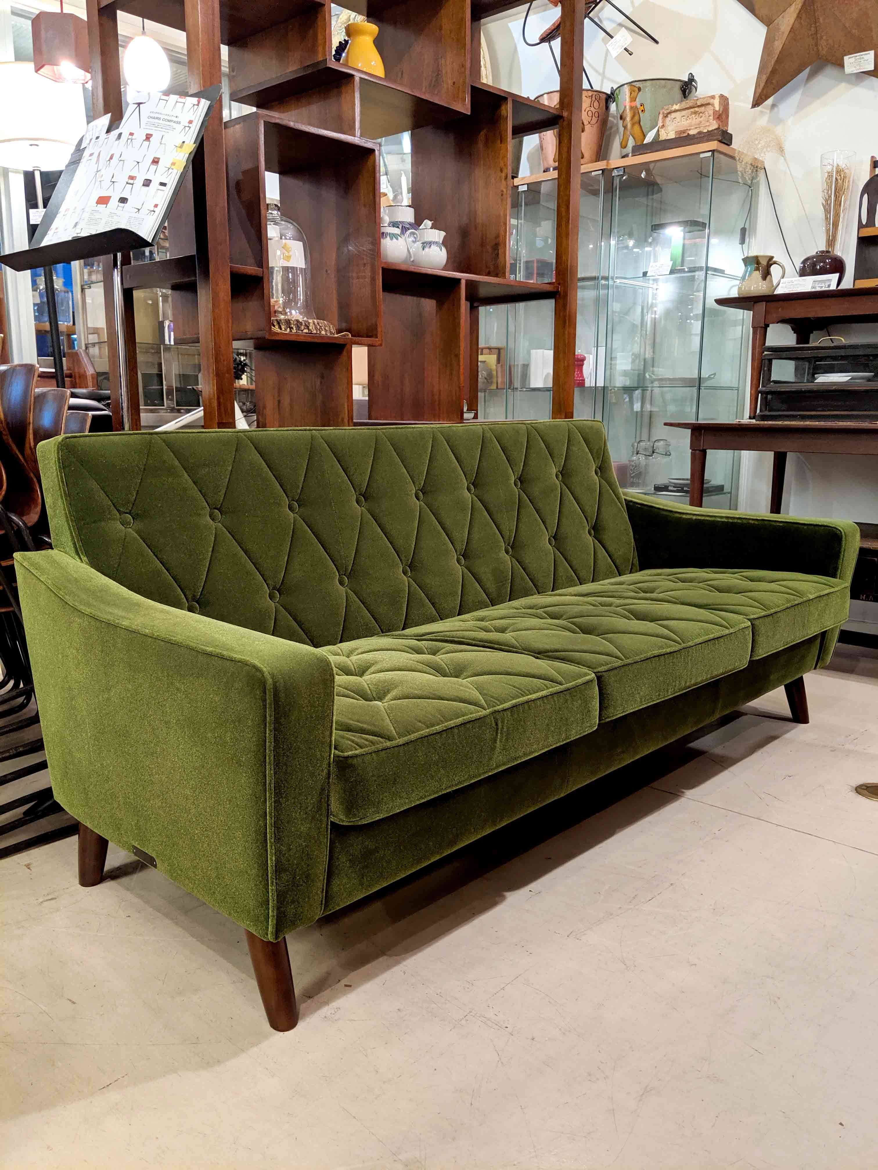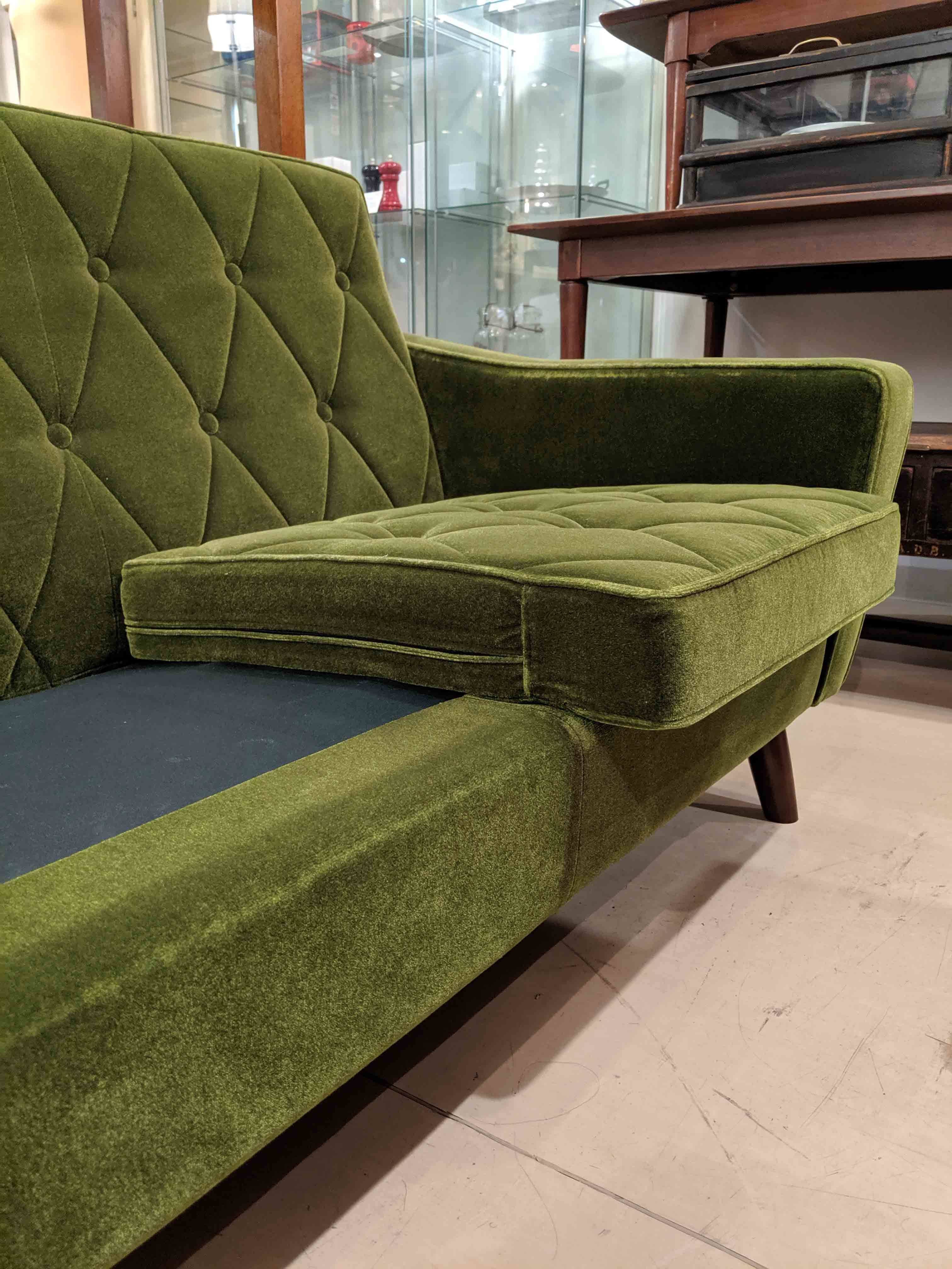 目を惹く張地は、モケットグリーンの柔らかな布地