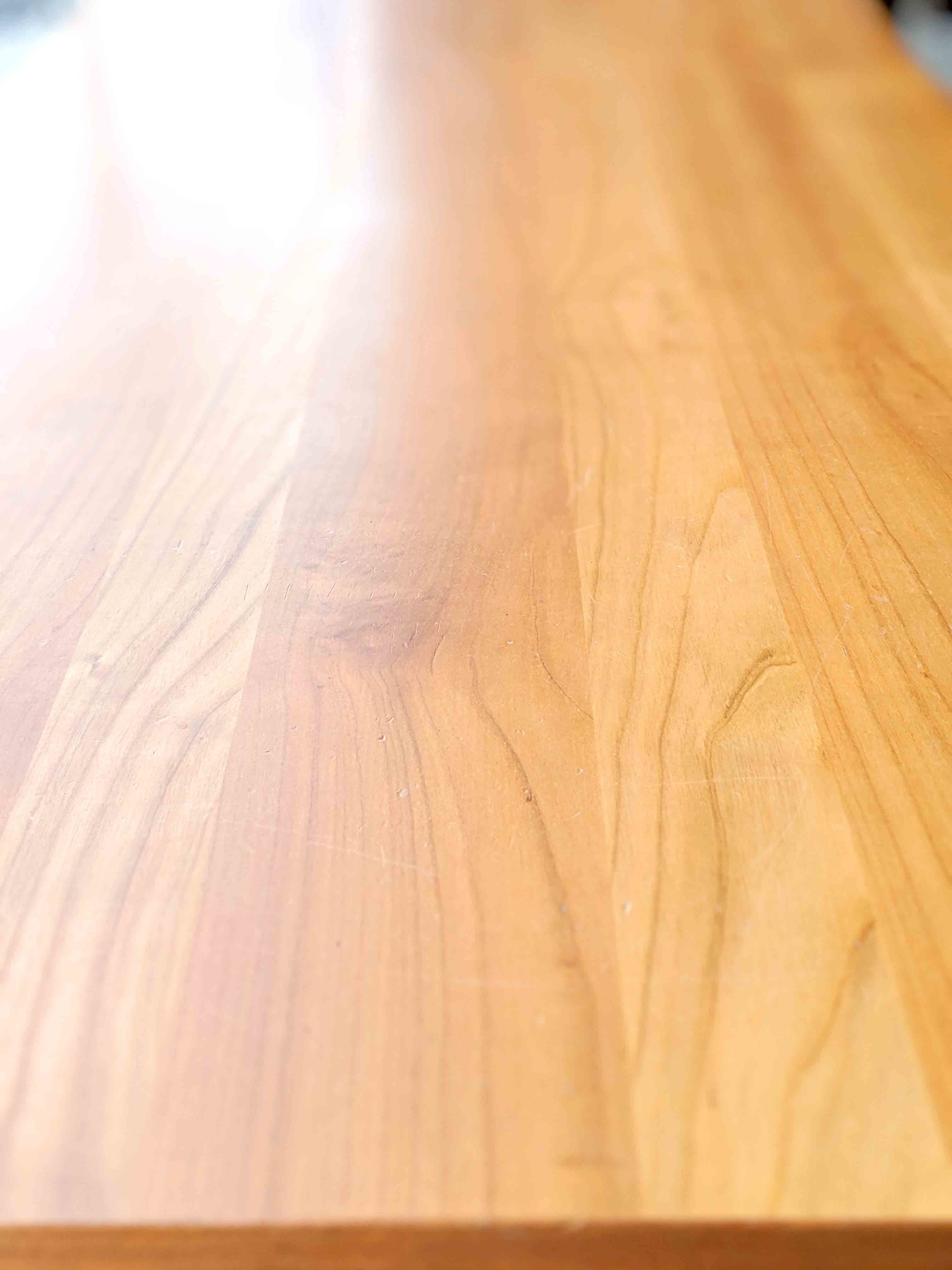 主材はチェリー無垢材、温かみある明るい木肌の雰囲気