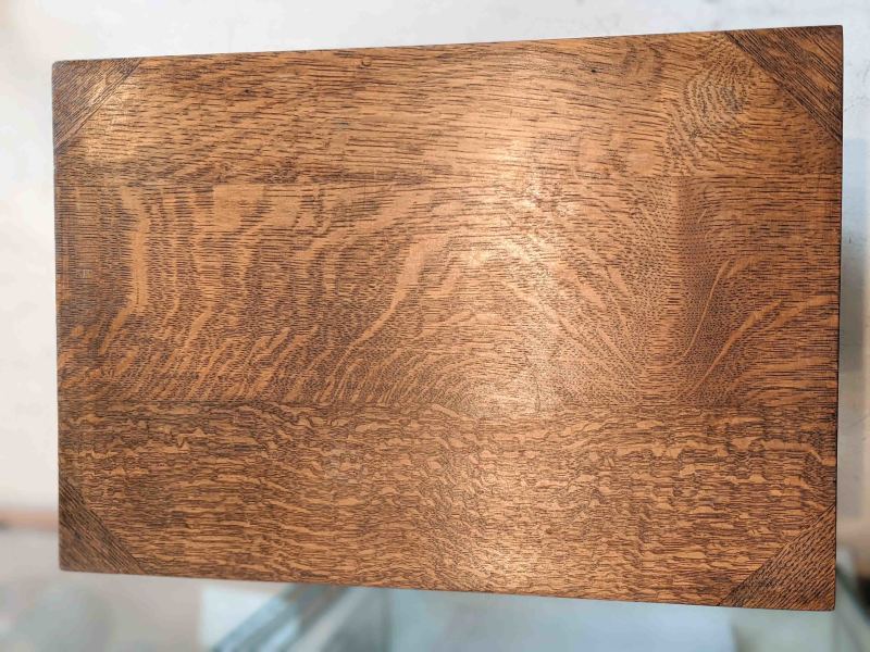 四隅に木目の異なるパーツを組み合わせた木象嵌細工