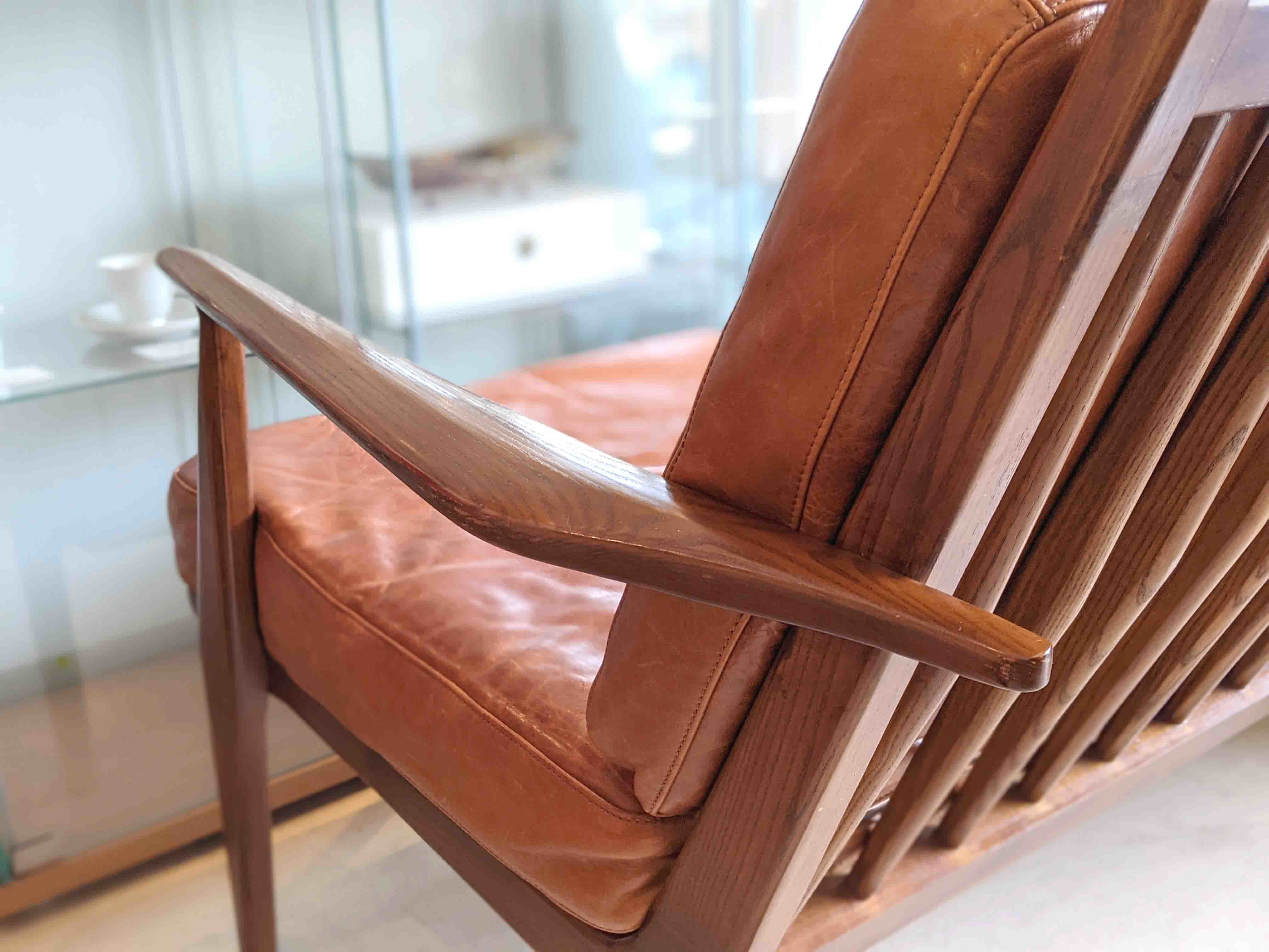 背と座面は、適度な厚みがあり柔らかく丈夫なカウハイドレザー
