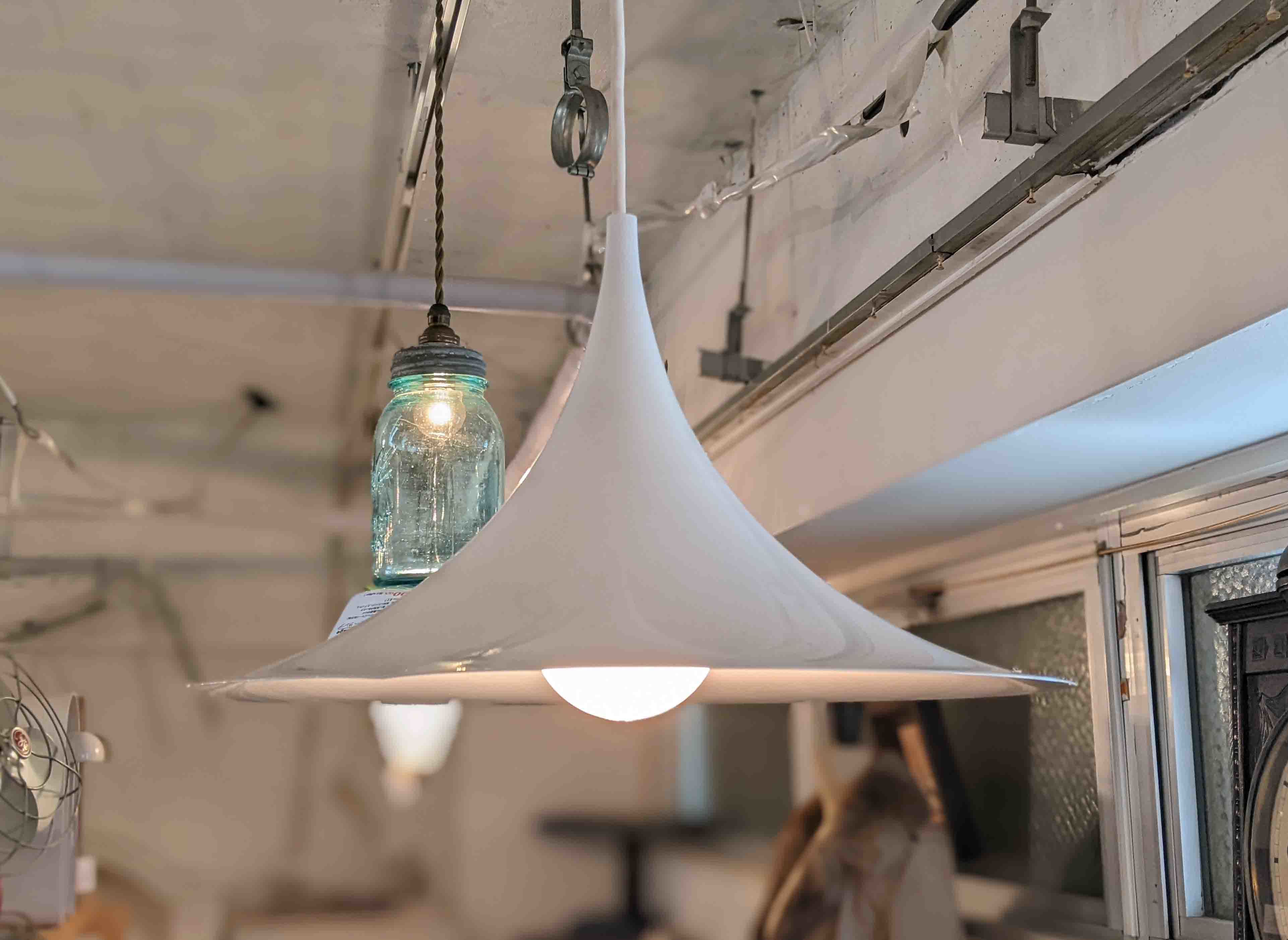 真っ直ぐ降りたコードから、放射状に広がるシェードのシルエット