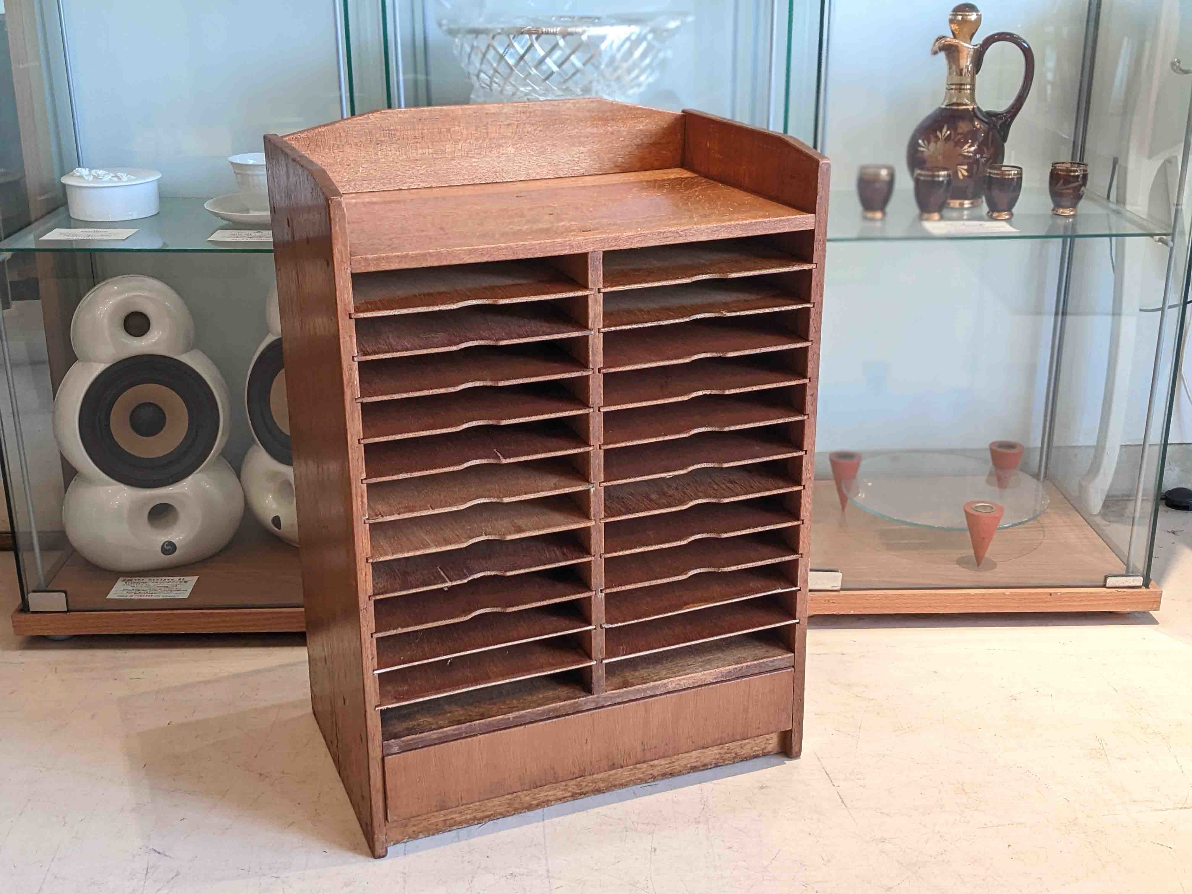 B5サイズの棚12段が2列と下部に1杯の引き出しの構成