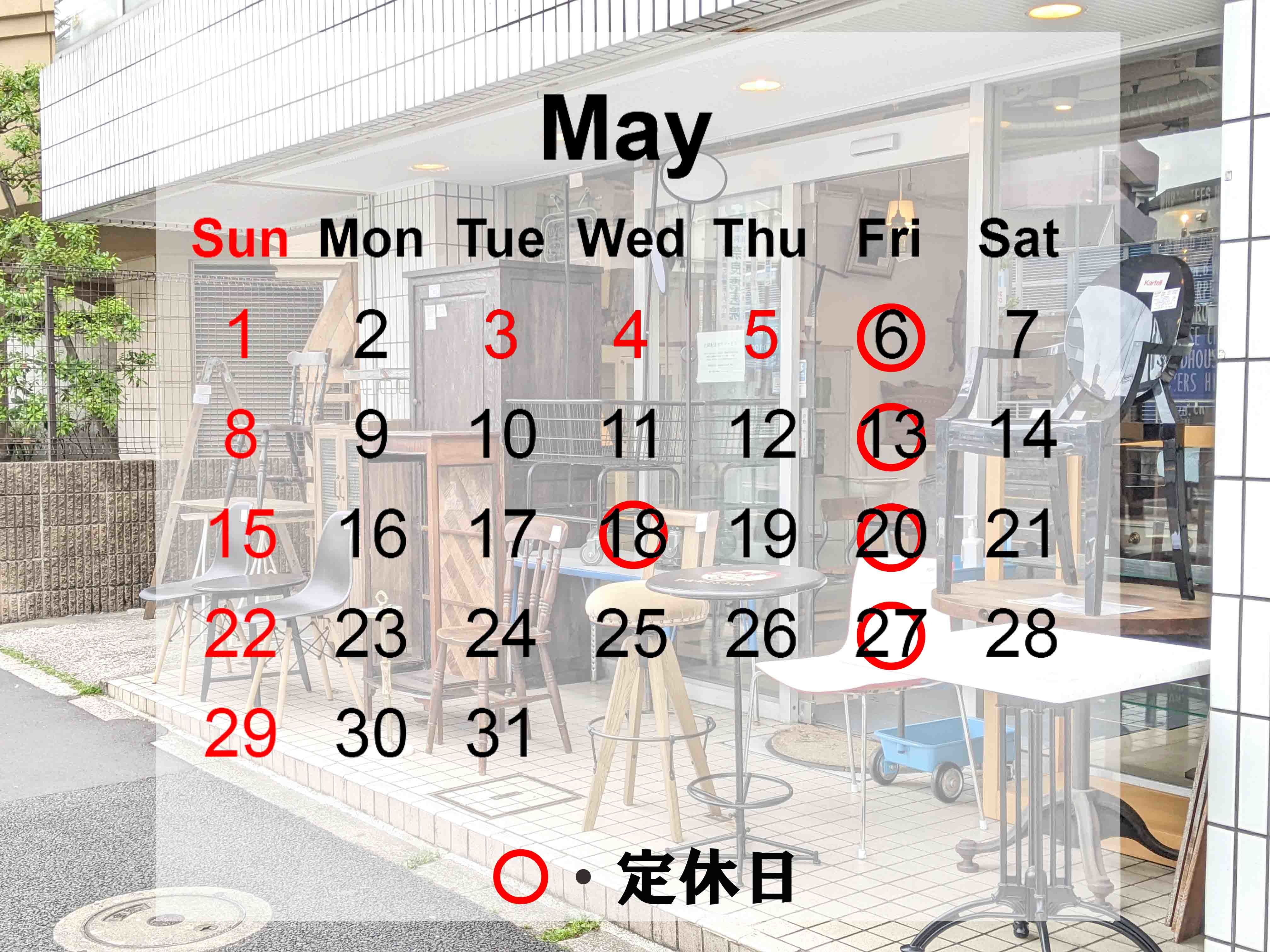 毎週金曜日と、第3水曜日の5/18にお休みさせて頂きます