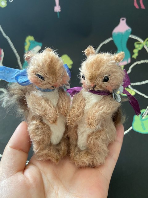 水色柄は柄生地はヴィンテージです。それにベロアピンク、水色ビロード合わせました