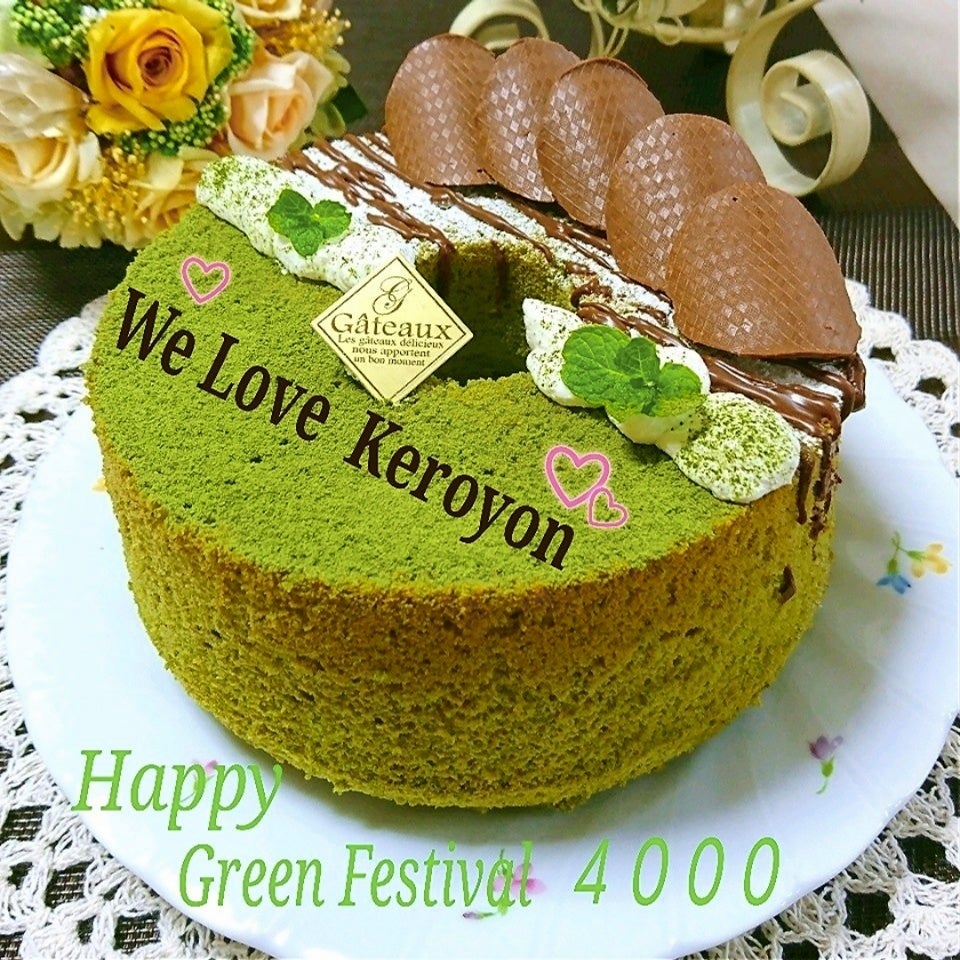 当初大みどり祭りFinalに投稿する予定で準備していたみど〜りな抹茶のシフォンケーキ♪