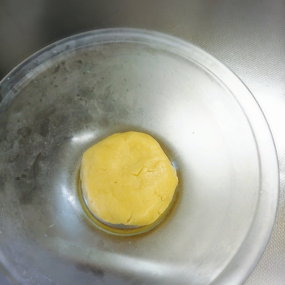 タルト生地の材料を順に入れては混ぜてひとまとめにする