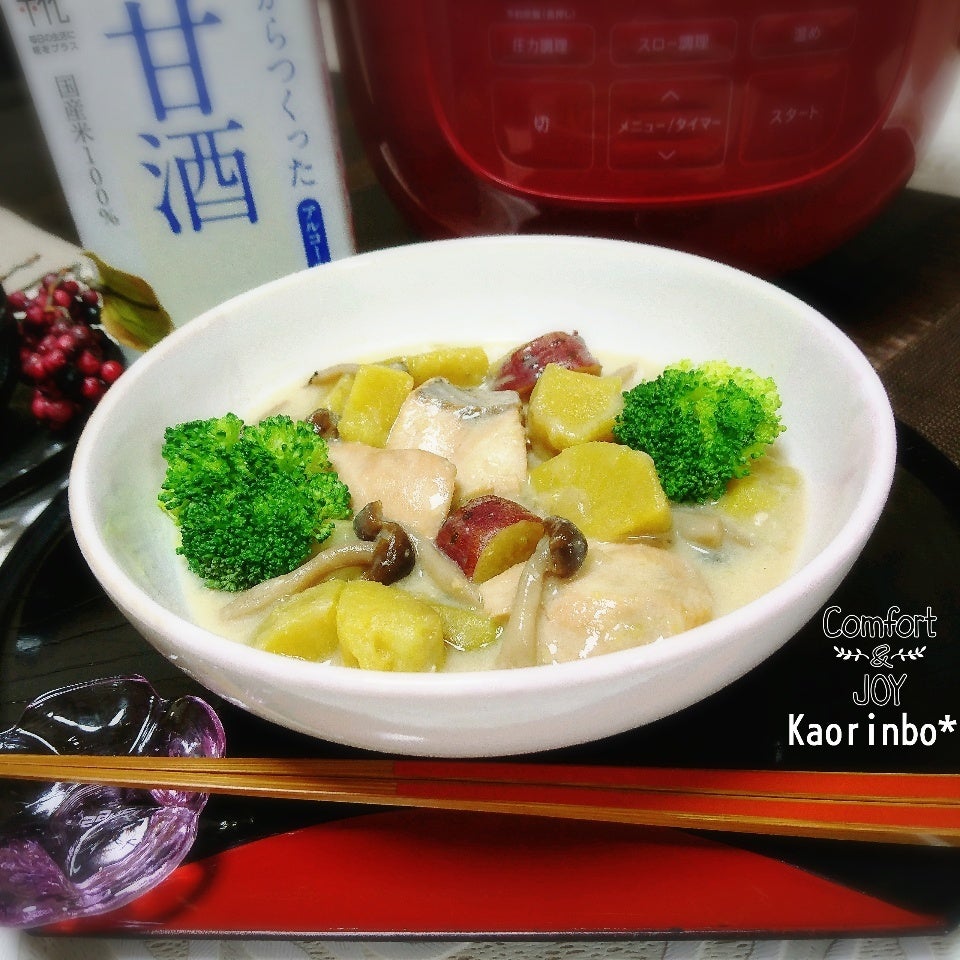 ホワイトソース加える前に甘酒もちょいと入れて程よい甘さのクリーム煮できましたん(*´꒳`*)b