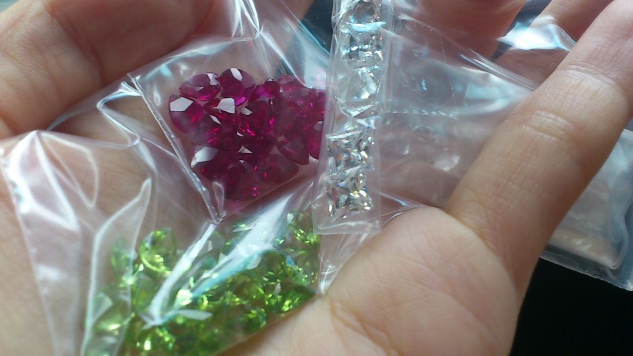 そして、こちらはキュービックジルコニアに合成ルビーとペリドット。