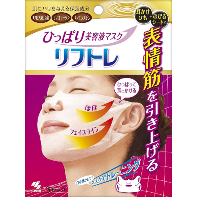 私が液体の化粧品マスクbr/br/[液体化粧品マスクを引いている小林製薬リフトレ]美顔術横紋筋を引いている3つのリフトレに入ることを上げて、特徴の筋肉(顔の横紋筋)を引くとき、それに向かって、与えてください、そして、私は若々しいです、そして、示す美しさマスク「リフトレ」は10-15分(頬の1つにつき筋肉)の間耳カバーひもで長期席を着ます、そして、あごは上がります。席を中で含んだ液体化粧品が皮膚緊張の間で;それに関して広がったという趣旨が、あります!