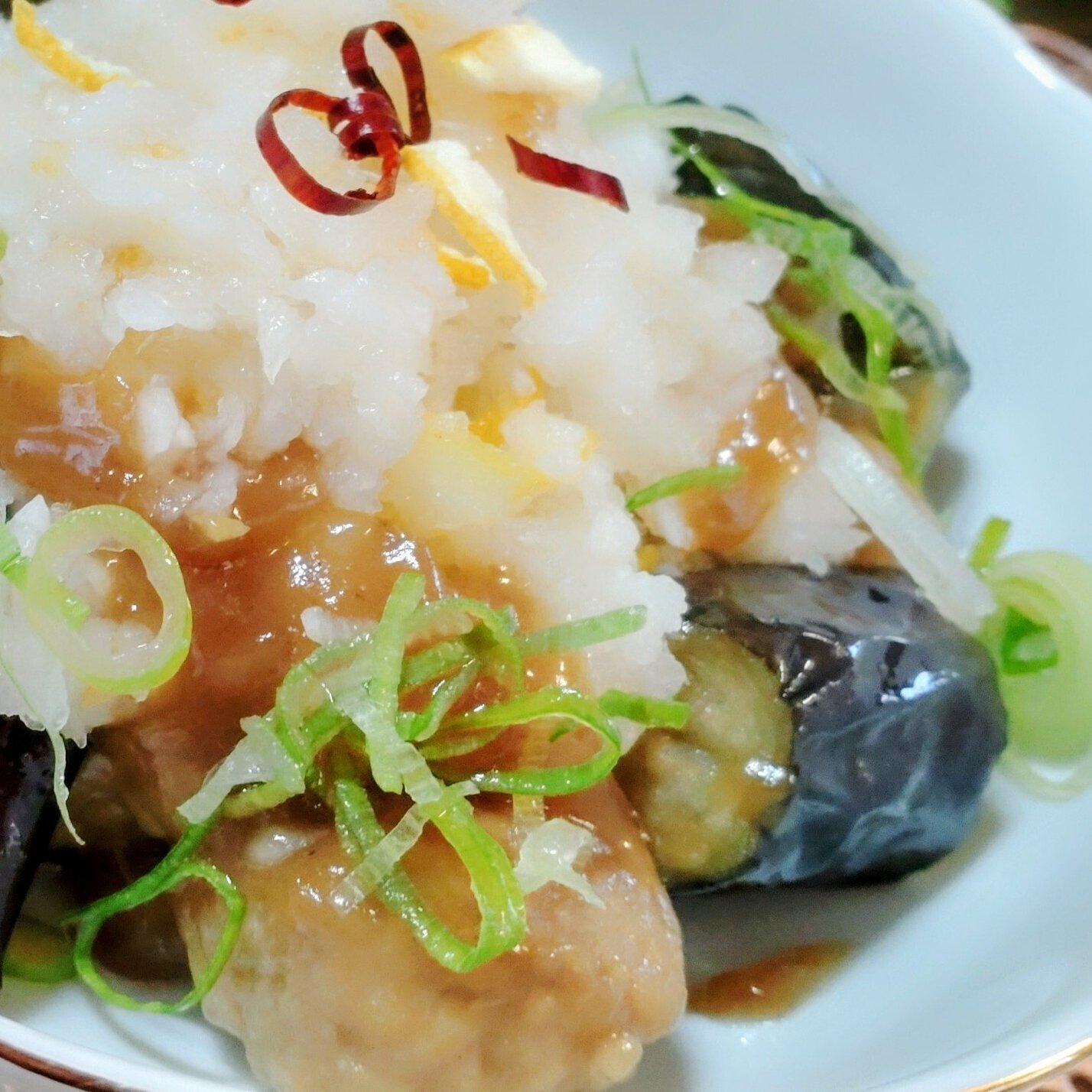 ①肉だんご&揚げ茄子の柚子おろし
