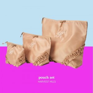 同素材を使ったポーチセットはバッグインとしても使えて、旅行の着替えやお子様の着替えを入れたり、プレゼントにも大好評。そうしたファッション性のこだわりがこのブランドの魅力のひとつです。
