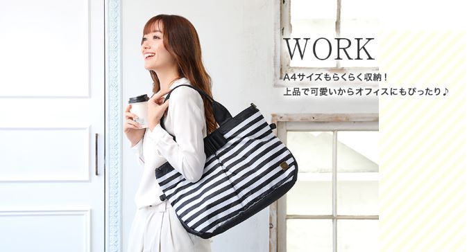 今回はその中でも、女性らしさがあり、仕事とプライベート、両方でも使いやすい人気のHARVEST HILLSリボントートバッグ(ボーダー)に注目しました。
