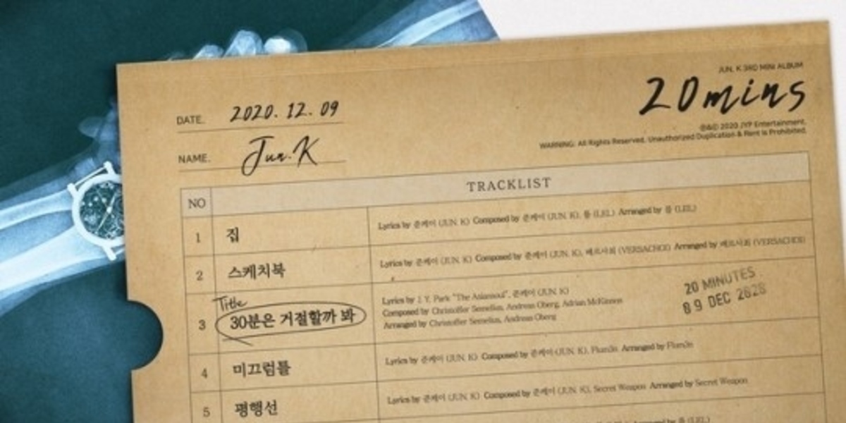 所属事務所のJYPエンターテインメントは1日0時、公式SNSにJun.Kの3rdミニアルバム「20分」のトラックリストを掲載した。