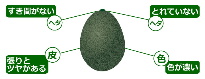 形がきれいで果皮に張りとツヤがあり、ヘタと果皮の間に隙間がないものが良品です。