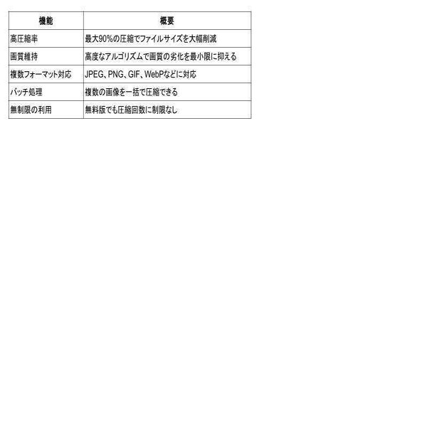 複数の画像を一度に圧縮できるため、大量の画像を扱う際の作業効率が大幅に向上します。これは特にWebデザイナーやマーケティング担当者に好評です。 -