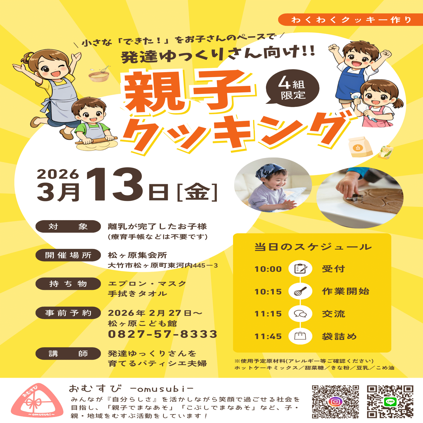 おむすびさん主催の「親子でまなあそ」の企画として発達ゆっくりさん向けの親子クッキングを開催させていただくことになりました。