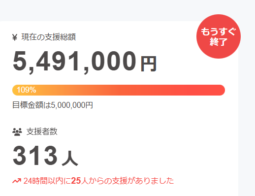 現在は570万円✨クラウドファンディングは月曜日まで!