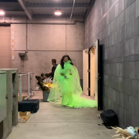 カラーウィッグモデル[ピンクバージョン]とトークイベントの本番前