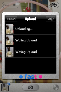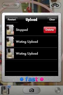 シャッターボタンを押すとすぐさま自動的にアップロードが始まり、しかもバックグラウンドで送信するので、続けて何枚も撮影可能です!