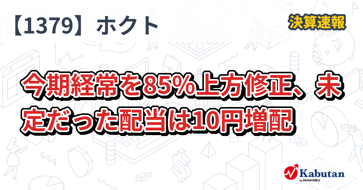 ホクト <1379> [東証P] が3月8日大引け後(15:00)に業績・配当修正を発表。