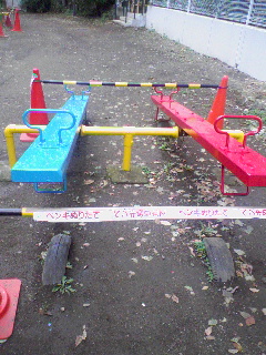 せっかく公園見付けたのに『ペンキ塗り立て』だって。とほほ(涙)