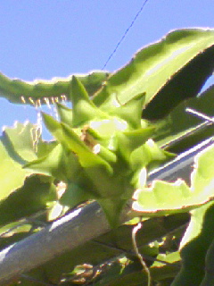 と、ドラゴンフルーツ発見。まだ青いですね。