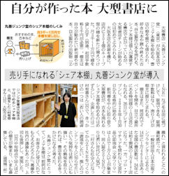 今日の朝日新聞にこんな記事が載っていました。いま流行のシェア本棚ですね。各地に広がっていますが、通常の書店の中にできるのは珍しいのではないでしょうか。