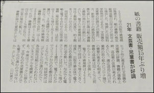 「紙の書籍 販売額15年ぶり増」だそうです。