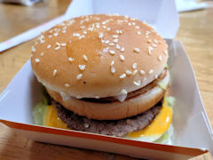 で、今日のあたしはレギュラーメニューである「ビッグマック」をピクルス抜きで注文しました。このビッグマック、生まれてこの方、もう何十個も食べているはずですが、子供のころに食べたビッグマックはもっと大きなハンバーガーだったような記憶があります。それが今ではこんなに小さくて、かわいらしいハンバーガーです。実際に小さくなっているのか、それともあたしの記憶がビッグマックを理想化してしまっているだけなのでしょうか。
