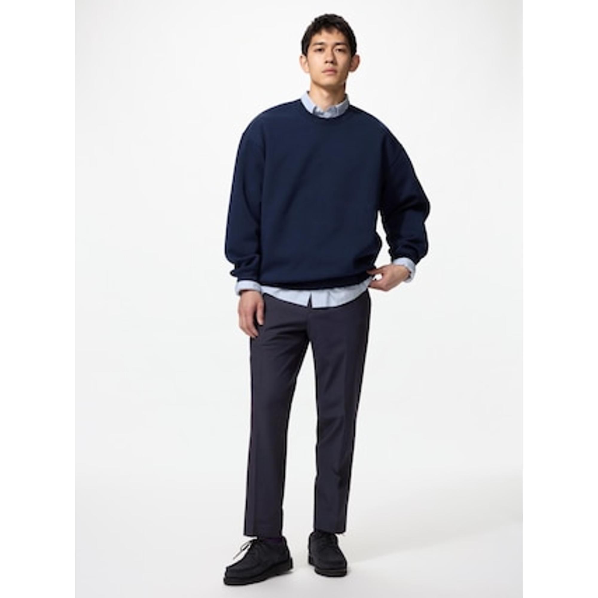 オーバーサイズスウェットシャツ / スウェットワイドパンツ(Uniqlo : C):各1,290円 ブルー(カラー:65)のみ、最終価格とも言える安さになっています。セットアップでの着用もおすすめです。