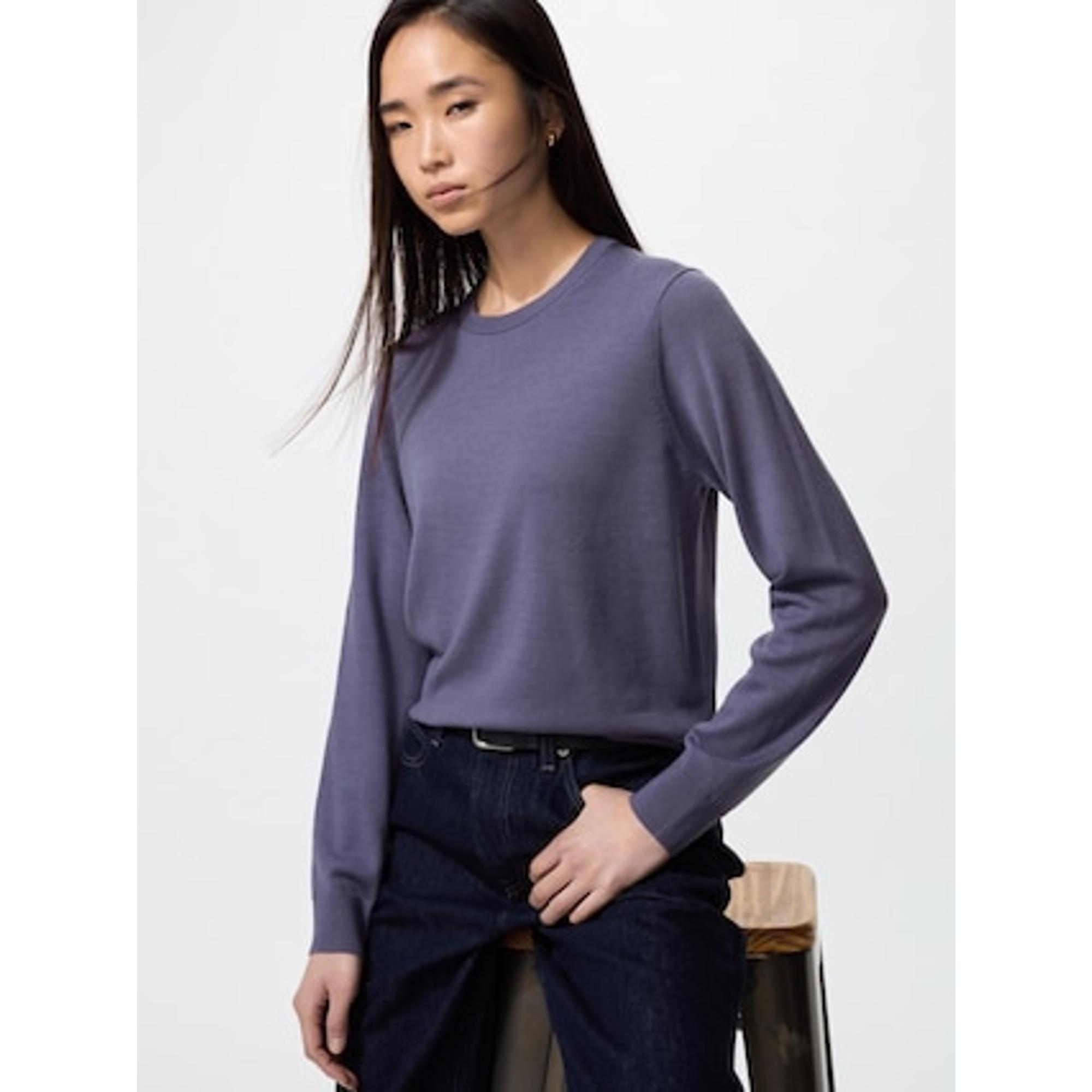 ラムクルーネックセーター:1,290円 「芸術品のようなニット」と評される1着。オンラインサイズ限定の価格ですが、XSサイズは女性にも向いています。