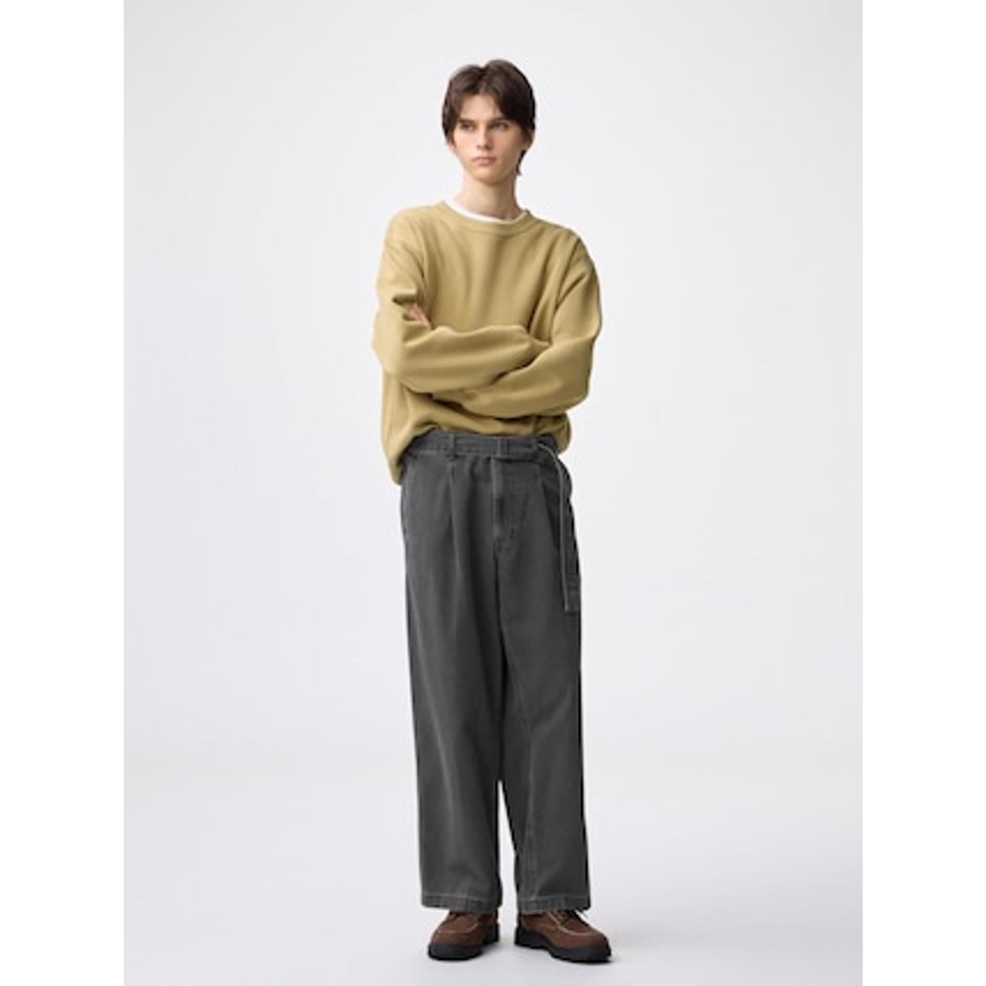 価格:1,490円 裾に向かって緩やかに細くなるテーパードシルエットが特徴。ベルトの調整が可能でゆったりとしたデザインです。デニム(コットン100%)とチノ(ポリエステル/コットン)の2種類があり、どちらも1,490円は本当にお買い得です。