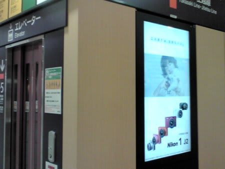 ドアの上の画面にいろんなCMが流れてる