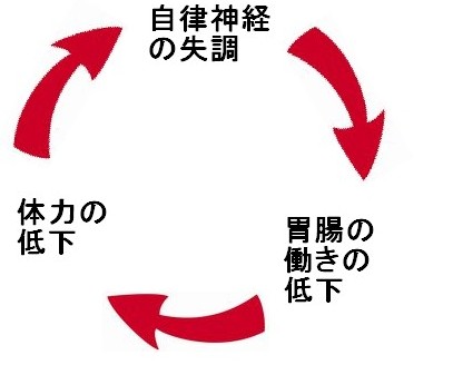 このように自律神経の失調と胃腸の働きの低下がどんどんお互いを悪化させていく関係に陥ってしまいます。