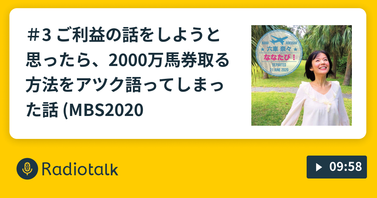 #3 ご利益の話をしようと思ったら、2000万馬券取る方法をアツク語ってしまった話 (MBS2020年7月5日OA分)#深夜ラジオ #MBSラジオ #ななたび #ご利益 #旅 #六車奈々 #メッセージ募集 #パワースポット #競馬 #万馬券 #一攫千金radiotalk.jp