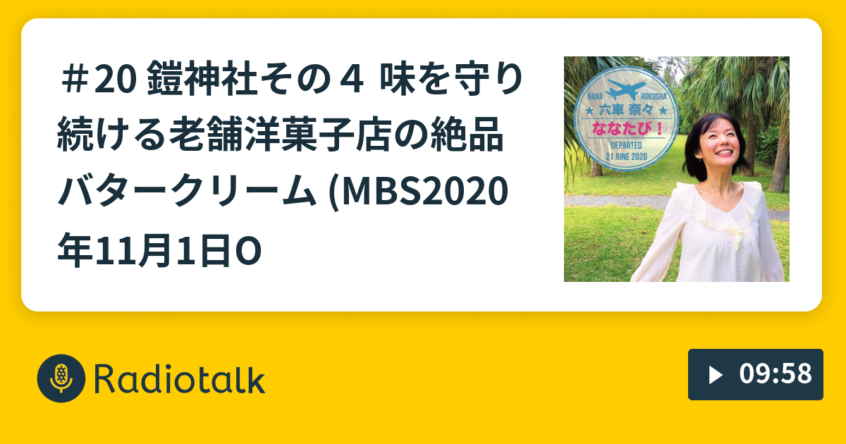 #20 鎧神社その4 味を守り続ける老舗洋菓子店の絶品バタークリーム (MBS2020年11月1日OA分)#MBSラジオ #ななたび #ご利益 #旅 #六車奈々 #メッセージ募集 #パワースポット #平将門 #鎧神社 #北斗七星伝説 #老舗洋菓子 #グルメ #トリアノン #バタークリームケーキradiotalk.jp