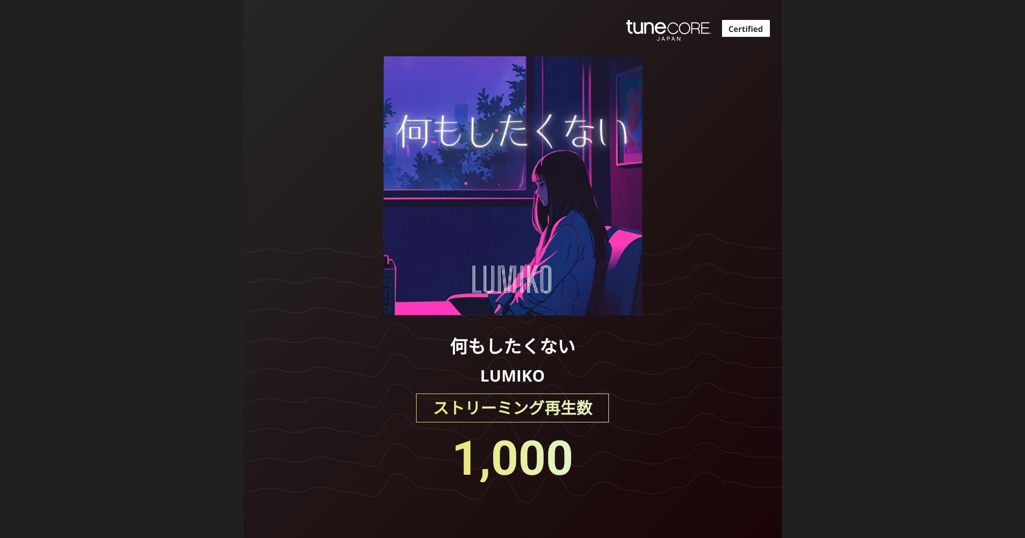 私の楽曲が、ストリーム再生1,000回達成しました!