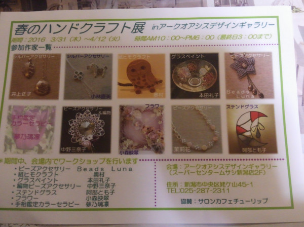 会場には、銀細工の井上先生、紙ひもの奥村先生、カラーセラピーの夢野先生がいらっしゃいますよ(#^.^#)