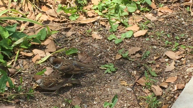 野生のスズメの親子