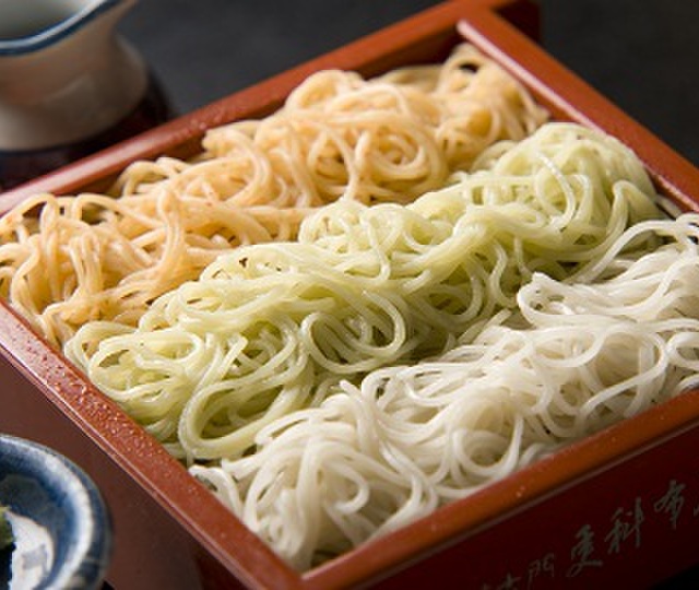 そば板カナッペと、三色蕎麦