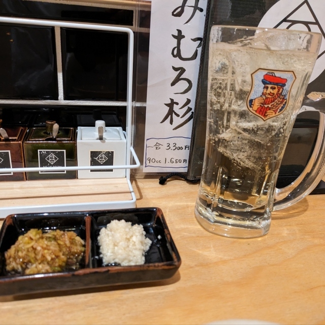 お通しのねぎ醤油と山わさびは、薬味としても、酒のアテにもなるそう。