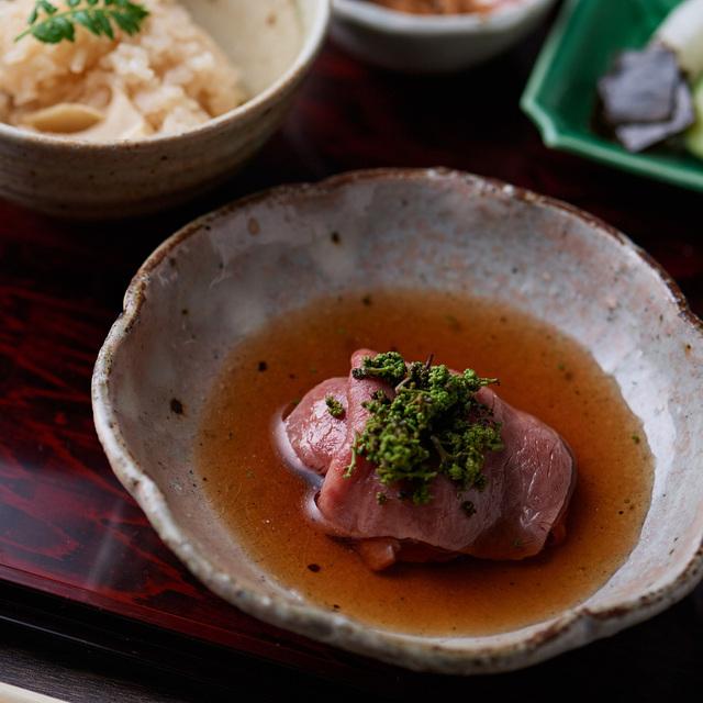 熟成猪ロースしゃぶしゃぶ 黄ニラ 新牛蒡 卵黄餡