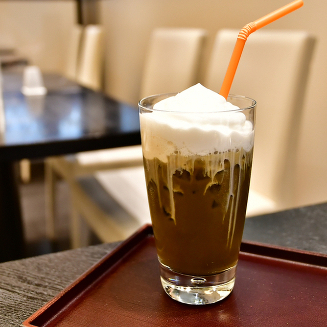 ふわふわのミルクが乗ったほうじ茶。