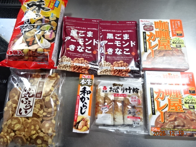 ▲レトルトカレー✖2 ●黒ゴマアーモンドきな粉